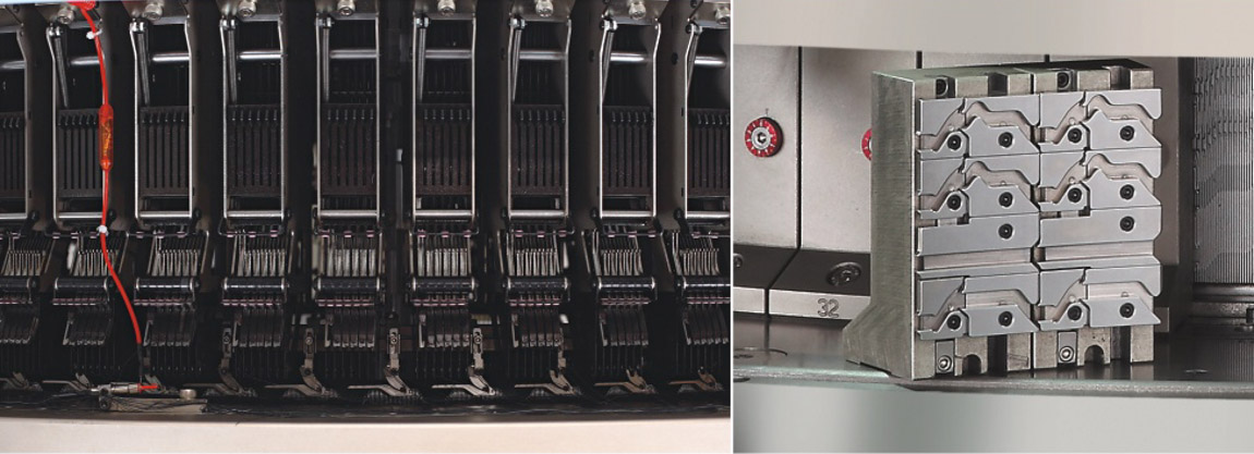 | 压针刻度精准,完全达到进口机标准,省去大量调机时间。采用同塔立式变色头:方便、稳定、不积尘、无沙尾、少飞毛。同塔变色头,对于不同成分、粗细的编织面料,都能切削自如,夹线牢固。控制系统采用******的微处理控制器、触屏式面板。 |