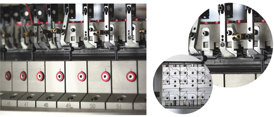 采用高速二功位(成圈、浮线)电脑选针技术,可达到高速稳定的优越编织效果。